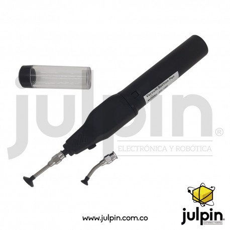 Para usarla, lo único que hay que hacer es instalarle la boquilla deseada, (recta o curva) incluidas dentro del paquete y así mismo la copa de succión según el tamaño y/o peso del componente a manipular y por último debe posicionar la copa sobre la parte superior plana del circuito integrado y oprimir el botón que acciona la bomba de vacío. Esta bomba de succión tipo lápiz incluye 3 copas de goma, a modo de sujetador, de 4mm, 6mm y 10mm de diámetro que permiten levantar respectivamente integrados o componentes de 10g, 35g y 80g.