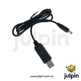 El cable Elevador de voltaje o Booster desde fuente USB de 5V a salida elevada a 12VDC por plug 5.5×2.1 mm es un cable adaptador DC-a-DC con elevador de voltaje que permite alimentar dispositivos que requieren 12 V DC a partir de una fuente USB de 5 V estándar (como powerbanks, cargadores, puertos USB de computadores o adaptadores USB).
