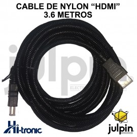 Se trata de un cable de interfase HDMI de marca Hi-tronic con longitud de 3.6 metros, el cual está diseñado con materiales y características de alta calidad que lo hacen un cable de alta definición (1080P). Está construido con cable calibre 28 AWD. Tiene conector macho en ambos extremos, pines dorados y un recubrimiento de nylon que le da protección adicional para ser instalado en zonas donde tiene contacto con otras superficies.