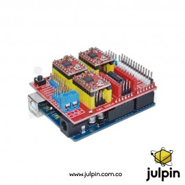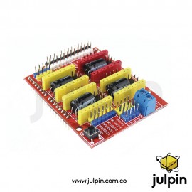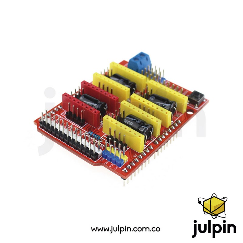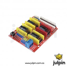 Este producto se trata del shield o escudo para montaje de los controladores A4988 para motores paso a paso en la construcción de impresoras 3D y CNC. Se puede utilizar como tarjeta de expansión montado directamente sobre un arduino UNO R3 (No incluido) para el control de máquinas de grabado e impresoras 3D. Cuenta con un total de 4 ranuras para módulos de accionamiento A4988 de motor paso a paso (no incluidos).