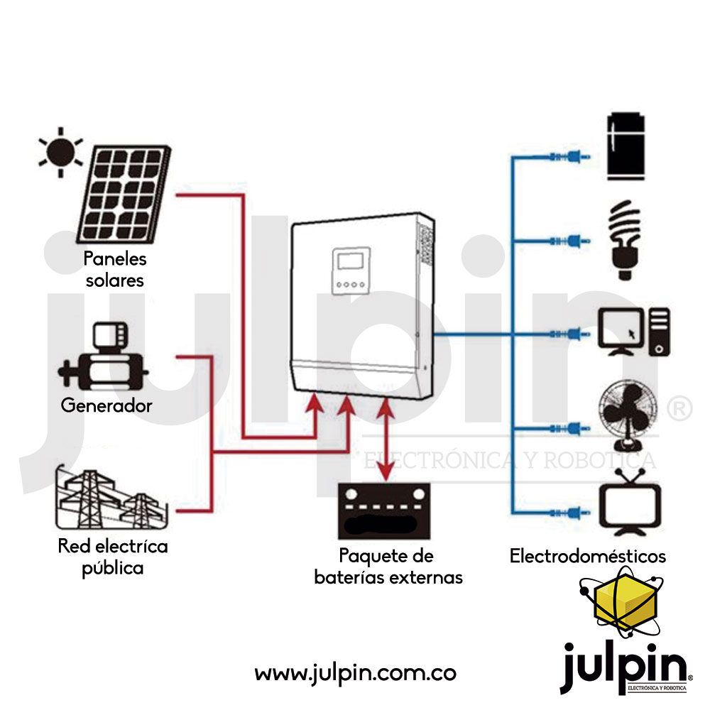 Inversor de 3KW de baja frecuencia, salida 110V, con entrada de 48V, salida de onda pura, con cargador de baterías, Respaldo de red y software para monitoreo local. Marca Must.