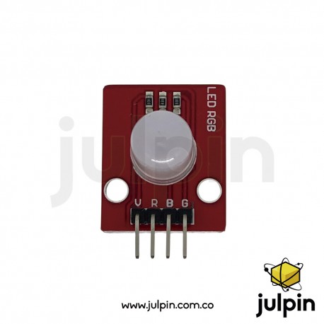 Módulo LED RGB de 10 mm para 5V con diodos rojo, verde y azul integrados. Ideal para efectos de iluminación, señalización y proyectos con Arduino y microcontroladores. Módulo de activación con nivel bajo (-)
