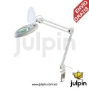 Este producto se trata de una lupa con base de trinquete o tornillo especialmente diseñada para ser ajustada en un banco de trabajo o incluso para ser sujetada en barras, tubos, esquinas u otras estructuras verticales donde una base grande de mesa no puede utilizarse. Es un equipo pensado para el trabajo profesional de ingenieros, técnicos en reparación o mantenimiento de partes electrónicas o incluso personal médico u odontológico que requiera tener una visión ampliada y precisa en el manejo y observación de piezas pequeñas o que demandan alta precisión en su instalación.