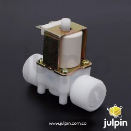 Este producto se trata de una válvula solenoide normalmente abierta que se acciona a 12VDC e incorpora tubos de conexión con rosca de 3/4 de pulgada . Este producto es ampliamente utilizado en proyectos de electrónica, automatización y muchos proyectos que requieren CERRAR O IMPEDIR TEMPORANMENTE el paso de un líquido. Esta electroválvula cuando no está alimentada mantiene abierto el paso de líquido a través de ella y al recibir un voltaje de 12V impide el paso del líquido durante el tiempo que se mantenga el voltaje en el solenoide.