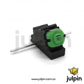 Este producto es un pequeño motor que funciona a voltajes entre los 3V y los 6V y que viene montado en una caja de soporte oblicuo con sistema de engranajes de reducción de velocidad y doble eje de salida. Es un producto muy utilizado para realizar gran variedad de proyectos educativos y de prototipado en la construcción de Robots, vehículos RC y muchos otros proyectos, bien sea de electrónica simple o controlados con diferentes sistemas como arduino.