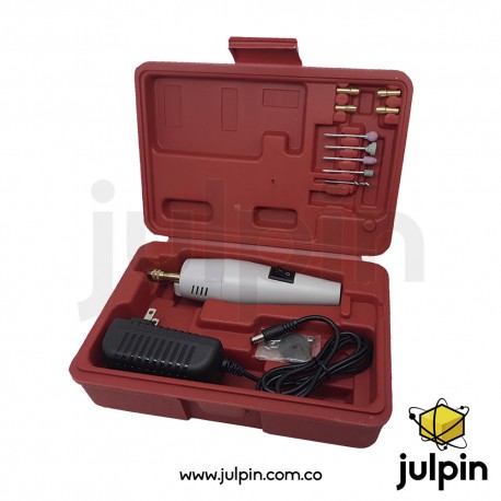 El mini taladro o mototool eléctrico está acompañado de un kit de accesorios para perforación y pulido de piezas. El mini taladro DZ-70705 está especialmente diseñado para trabajos livianos que requieren precisión como la perforación de placas PCB en trabajo de prototipado de proyectos electrónicos, los trabajos de manualidades y artes como la perforación de semillas para bisutería y en general los que un profesional, artista, estudiante de colegio o universidad y un aficionado requiere realizar. Trabajo en los que necesita una herramienta liviana, que pueda manejar fácilmente con una sola mano.