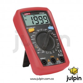 Según la documentación oficial del fabricante, el UT33B+ permite medir voltaje en corriente continua y alterna, corriente continua, resistencia eléctrica y cuenta con funciones prácticas como prueba de diodos, continuidad con zumbador acústico y prueba de baterías, función que permite evaluar el estado de pilas comunes bajo carga.