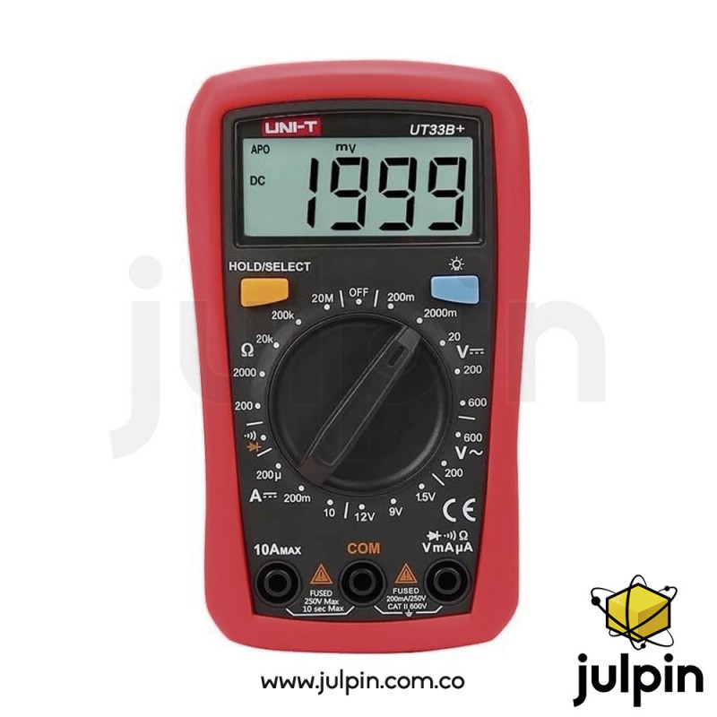 El UNI-T UT33B+ es un multímetro digital portátil perteneciente a la serie UT33+, orientado a usuarios que requieren un instrumento sencillo, robusto y confiable, con control manual del rango de medición. A diferencia del UT33A+, este modelo no es autorango: el usuario selecciona manualmente el rango adecuado mediante el selector rotativo.