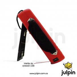 Su diseño portátil incluye una pantalla TFT a color de 5.7 pulgadas y alimentación mediante batería recargable de ion de litio, permitiendo su uso en campo, mantenimiento industrial y aplicaciones educativas.