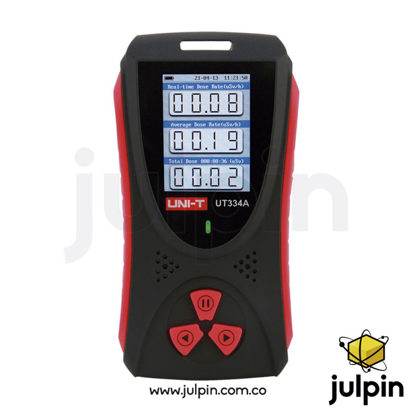 El UNI-T UT334A es un medidor portátil de dosis de radiación diseñado para la detección y monitoreo de radiación ionizante en múltiples entornos. Según la documentación oficial del fabricante, este equipo utiliza un tubo contador Geiger-Müller (GM) de alta sensibilidad, lo que le permite detectar con precisión radiación X, β (beta) y γ (gamma).