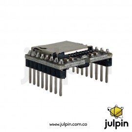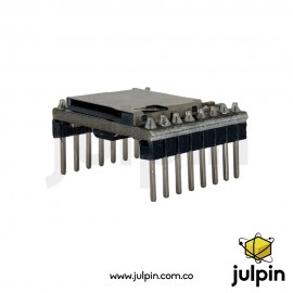 Este módulo permite reproducir archivos MP3, WAV y WMA´s almacenados en una tarjeta microSD, ofreciendo control mediante comunicación serial TTL, botones externos o entradas de activación directa. Incorpora un amplificador de audio integrado, lo que permite conectar directamente un altavoz sin necesidad de una etapa de potencia adicional.