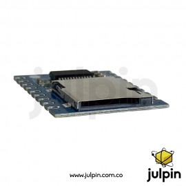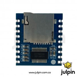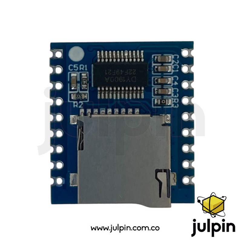 Este módulo incluye un decodificador de audio digital integrado compatible con formatos populares como MP3, y su salida puede conectarse directamente a un altavoz pequeño. La comunicación serial permite controlar la reproducción (reproducir, pausar, siguiente, anterior, volumen, etc.) desde microcontroladores como Arduino, ESP32, ESP8266 y Raspberry Pi.