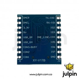 El módulo XY-V17B es ideal para aplicaciones donde se necesite audio con bajo consumo, simplicidad de integración y control mediante software.