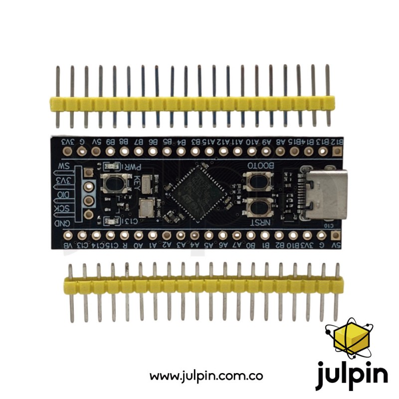 La STM32F401CCU6 Development Board es una placa de desarrollo compacta basada en el microcontrolador STM32F401CCU6 de STMicroelectronics, que integra un núcleo ARM Cortex-M4 de 32 bits con unidad de punto flotante (FPU), diseñado para aplicaciones de alto rendimiento y bajo consumo energético. Este microcontrolador pertenece a la familia STM32F4, ampliamente utilizada en sistemas embebidos industriales, educativos y comerciales.