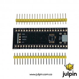 Esta placa es compatible con entornos de desarrollo como STM32CubeIDE, Keil, IAR y PlatformIO, y puede programarse mediante ST-LINK o programadores SWD externos. Es una excelente opción para aprendizaje de microcontroladores ARM, prototipado rápido y desarrollo de productos embebidos.
