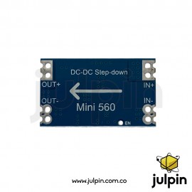 El 5A DC-DC Mini 560 Step-Down Regulated Power Supply Module 5V es un módulo convertidor reductor de voltaje diseñado para suministrar 5 V DC regulados a partir de una fuente de entrada de mayor voltaje DC. Utiliza un circuito integrado tipo buck switching regulator, lo que le permite ofrecer alta eficiencia, bajo calentamiento y excelente estabilidad frente a variaciones de carga.