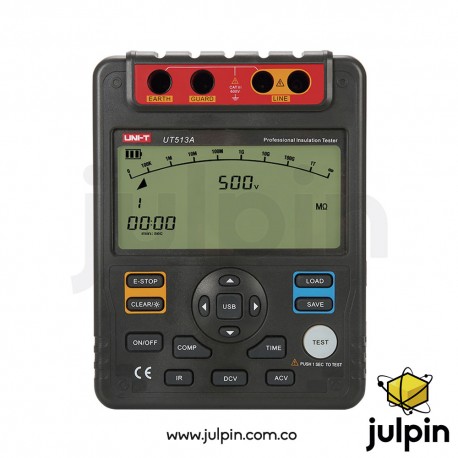 Su gran pantalla LCD con retroiluminación y gráfico de barras analógico de 30 segmentos permite interpretar fácilmente resultados, incluso en entornos con poca luz. El UT513A está diseñado para cumplir con estándares de seguridad industrial y facilitar el mantenimiento preventivo y correctivo en sistemas eléctricos.