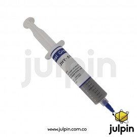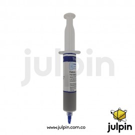 Se trata de una jeringa con 25 gramos de grasa térmica, que es un insumo muy importante para mejorar el funcionamiento y prolongar la vida útil de componentes electrónicos como los usados dentro de los ordenadores o computadores. La grasa térmica también es conocida como pasta térmica, silicona térmica, grasa siliconada o masilla térmica, es un excelente conductor de calor que se aplica entre dos o más componentes que están físicamente sobre puestos aunque no tengan una conexión directa.