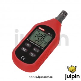 El medidor de temperatura y humedad UNI-T UT333 es un higrómetro digital portátil diseñado para medir de forma rápida y precisa las condiciones ambientales en interiores u otros espacios controlados. Con un diseño ergonómico ligero y una pantalla LCD con retroiluminación, permite leer simultáneamente temperatura y humedad en un formato claro y fácil de interpretar.